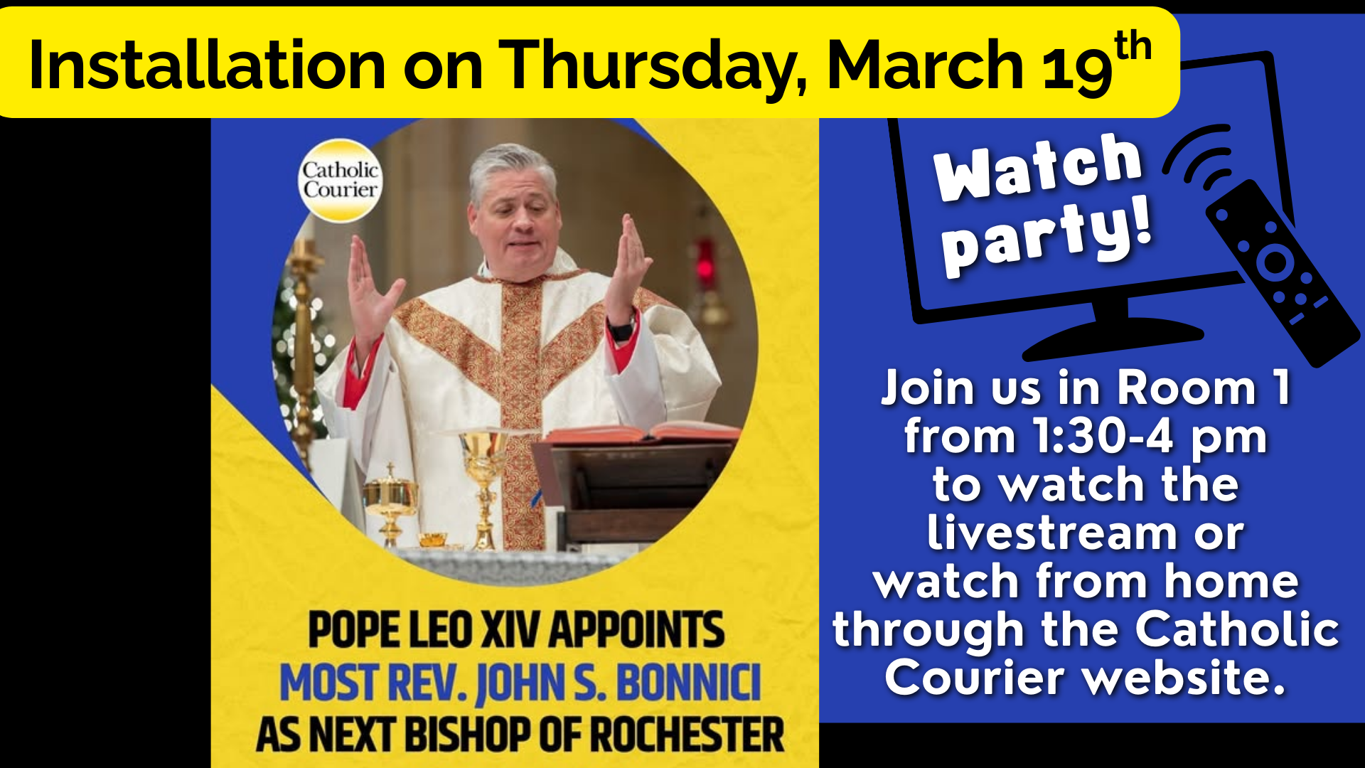 Join us in Room 1 starting at 1:30 pm or watch at home through the Catholic Courier's website.